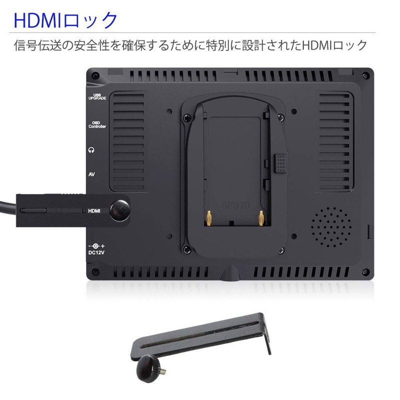 - Note: The product does not include the battery. Standard Accessories: Sun shade, F970 battery plate, mini HDMI cable, hot shoe mount, HDMI plug lock, instruction manual (English language not guaranteed)