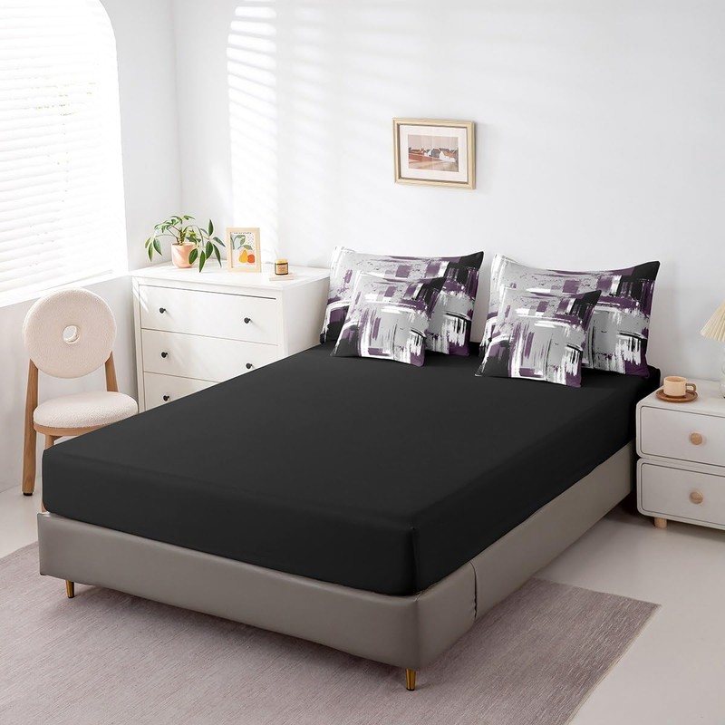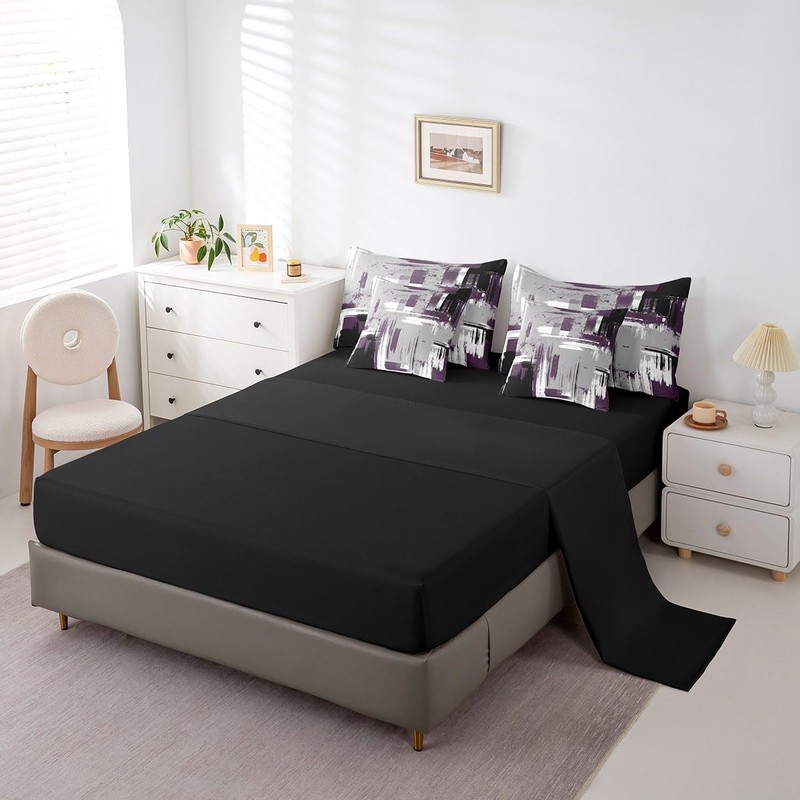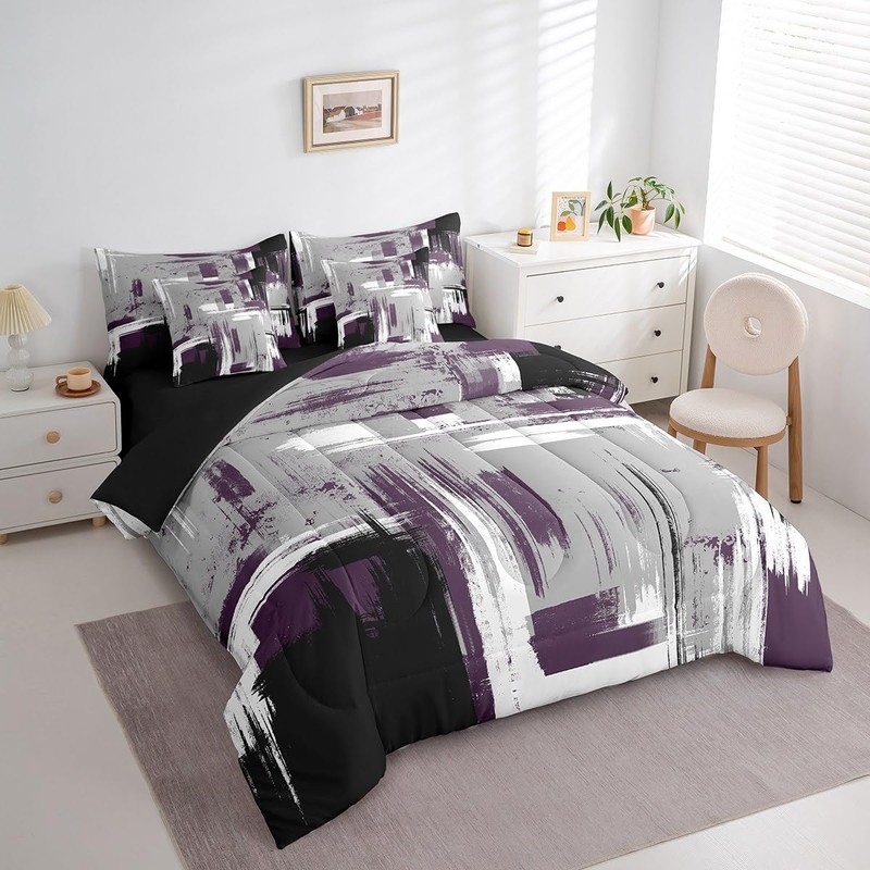 Feelyou Abstract 7 Piece Bedding Set Modern Abstract Art Bed in a Bag Purple Grey Black Comforter Lightweight Retro Bed Set Includes Comforter, Sheet Set, Pillowcases & Pillow Covers Full Size
