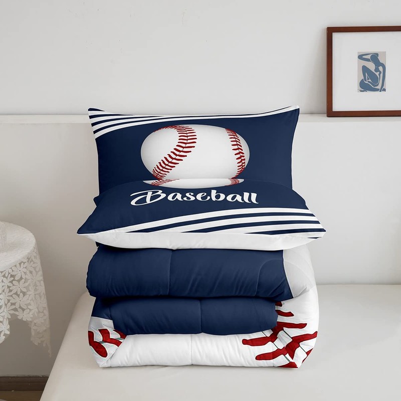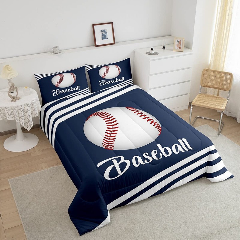 Feelyou Baseball Comforter Set Full for Boys Baseball Bedding Set for Kids Baseball Navy Blue Kids Baseball Comforter Bedding Set with 2 Pillowcases, Sports Baseball Quilt Set, Multi 125