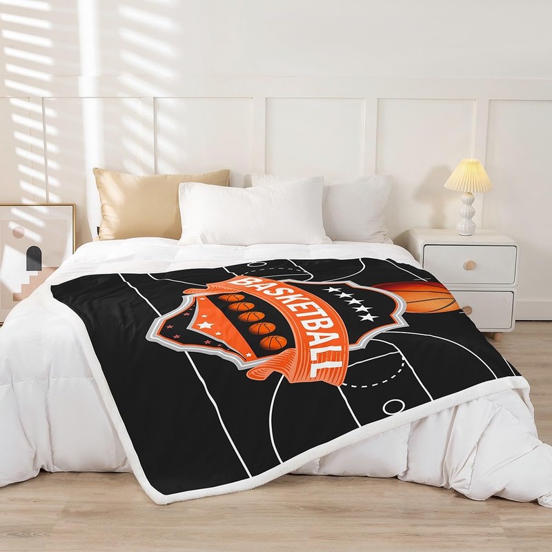 Feelyou Basketball Sherpa Blanket for Bed Sofa Couch Kids Boys Girls 40"x50" Basketball Player Fleece Throw Blanket Ultra Soft Gaming Sports Plush Blanket for Bed Sofa Couch Basketball Lover