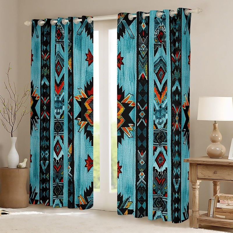 Feelyou Deep Blue Southwestern Darkening Drapes (2 Panels, 38 x 54 Inch) Geometric Curtains for Living Room Tribal Exotic Native American Indian 30%-50% Blackout Curtains Stripe Line Window Treatment