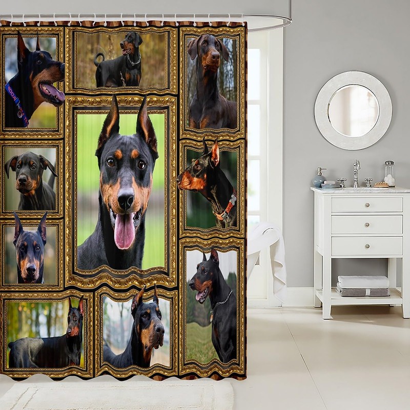 Feelyou Doberman Shower Curtain 72"x72" Cute Dog Puppy Bath Curtain for Kids Teens Adults Doberman Lover Gift Bathroom Curtain Dog Lover Kids Bathroom Accessories Room Decor