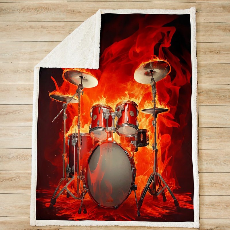 Feelyou Drum Kit Fuzzy Burning Drum Set Fleece Rock Music Themed Sherpa Blanket Throw Blanket for Sofa Couch Bedroom Decor Hip Pop Musical Pattern Plush Twin 60"x80"