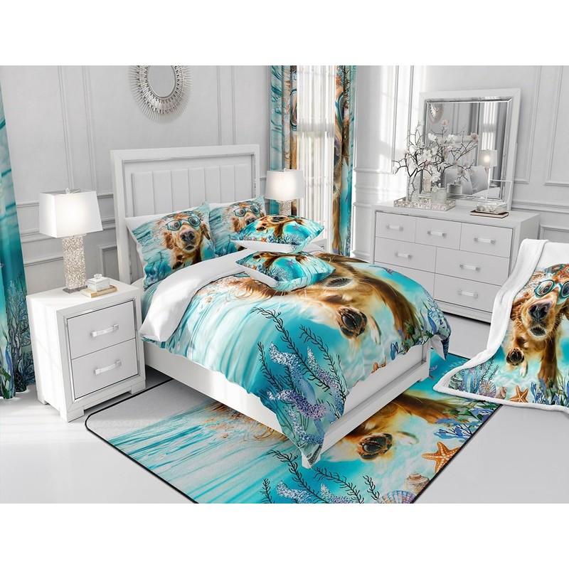 Feelyou Kids Boys Girls Ocean Fleece Throw Blanket Ocean Dog Plush Blanket Toddler Sea Sherpa Blanket Beach Coastal Fuzzy Cozy Soft Blanket 40"x50"