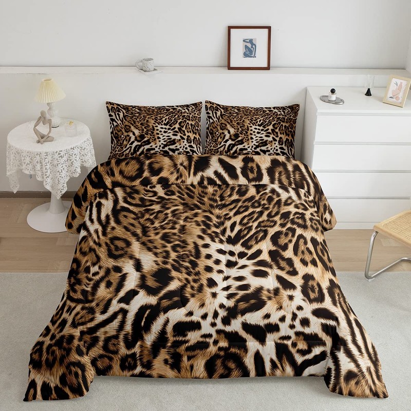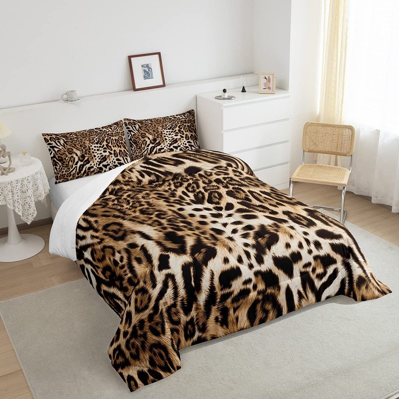 Feelyou Leopard Print Comforter Set Cheetah Print Bedding Set for Kids Boys Girls Wild Animal Print Comforter Leopard Fur Quilt Set 1 Comforter Set with 2 Pillowcases Queen Size