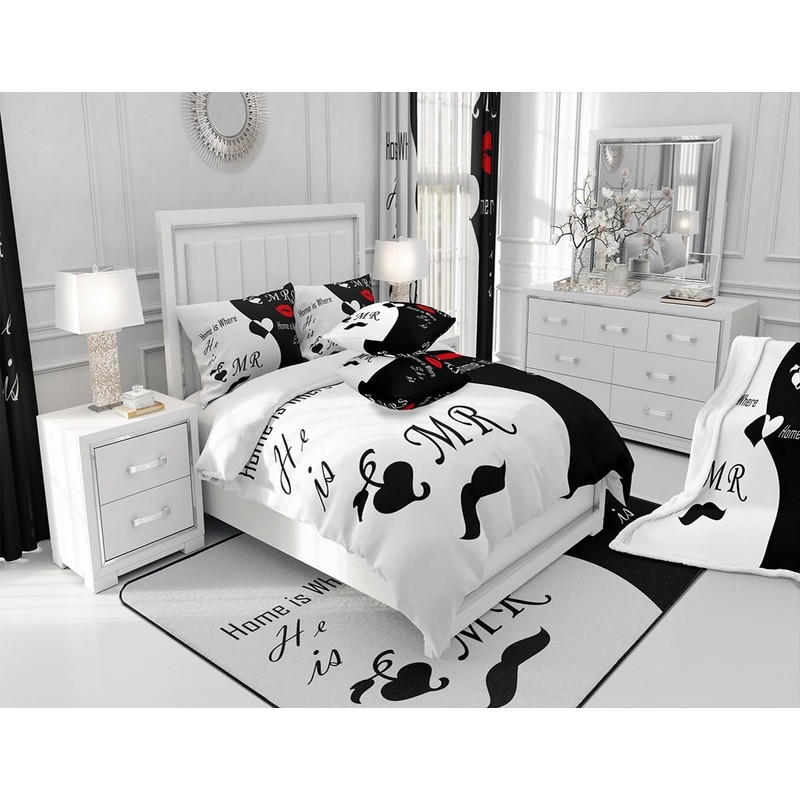 Feelyou Valentine's Day Bedding Set King Size His and Hers Comforter Set for Women Men Black White Comforter Romantic Lover Quilt Set 3Pcs