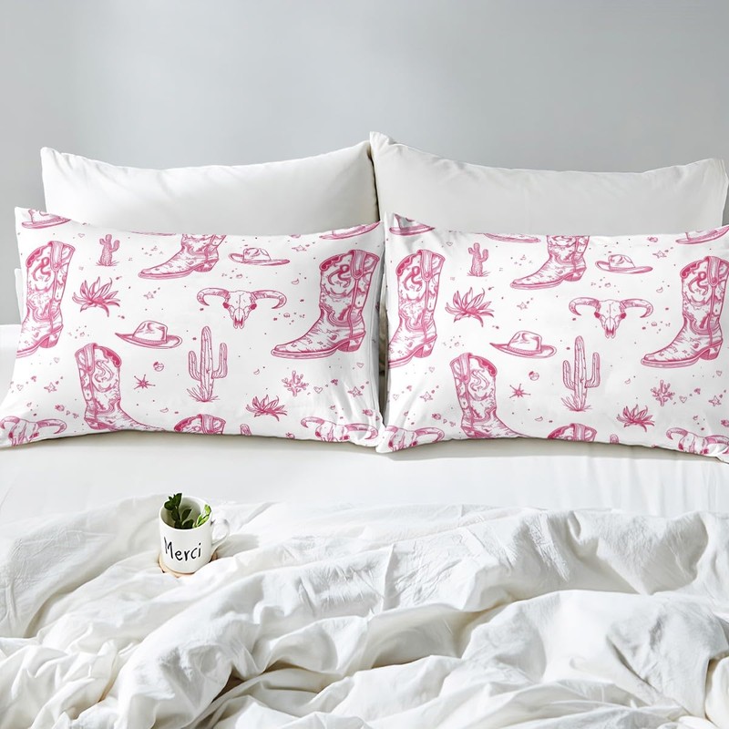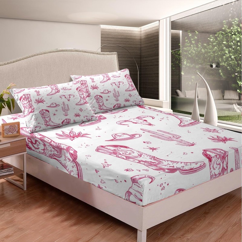 Feelyou Western Cowboy Fitted Sheet Cow Skull Bed Sheets Boys Girls Horseshoe Cactus Rustic Bedding Set Cowboy Boot Hat Farmhouse Sheets Set Bedroom Collection 3Pcs Full Size,No Flat Sheet
