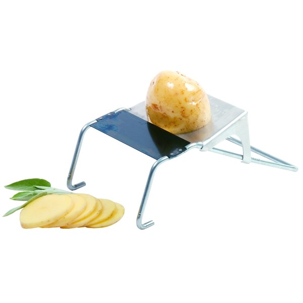 - This mandoline-style slicer is calibrated to make perfectly uniform cuts from 1/8" to 1/2" thick