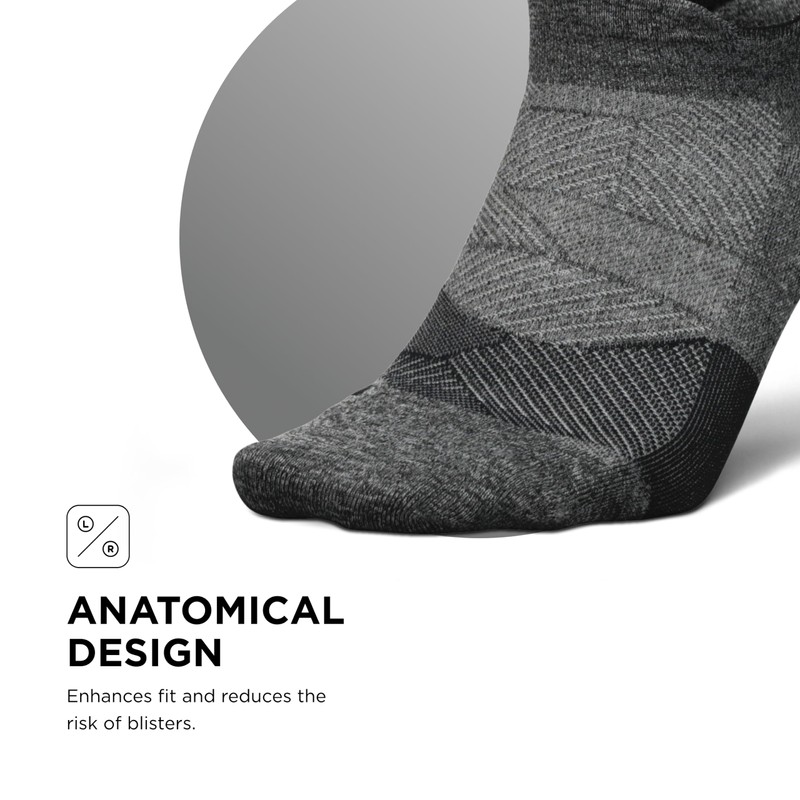 - Custom-Like Fit: Targeted Compression, a zone-specific compression, and an anatomical design, creates a unique fit you can feel, reducing the risk of blisters and other common running sock issues