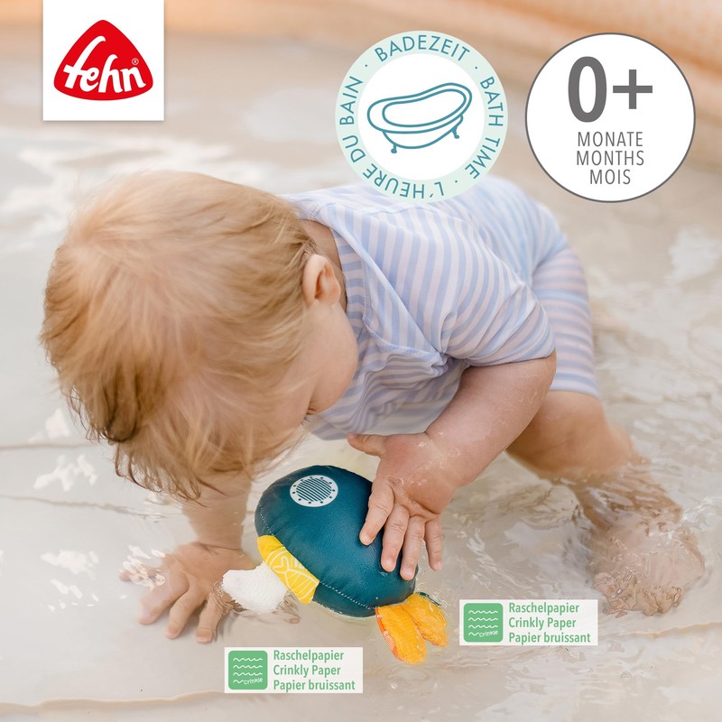 - Sensory promotion – thanks to hidden rustling paper and vibrant colours, the bath toy not only offers visual appeal, but also stimulates gripping and discovery, promoting baby's senses