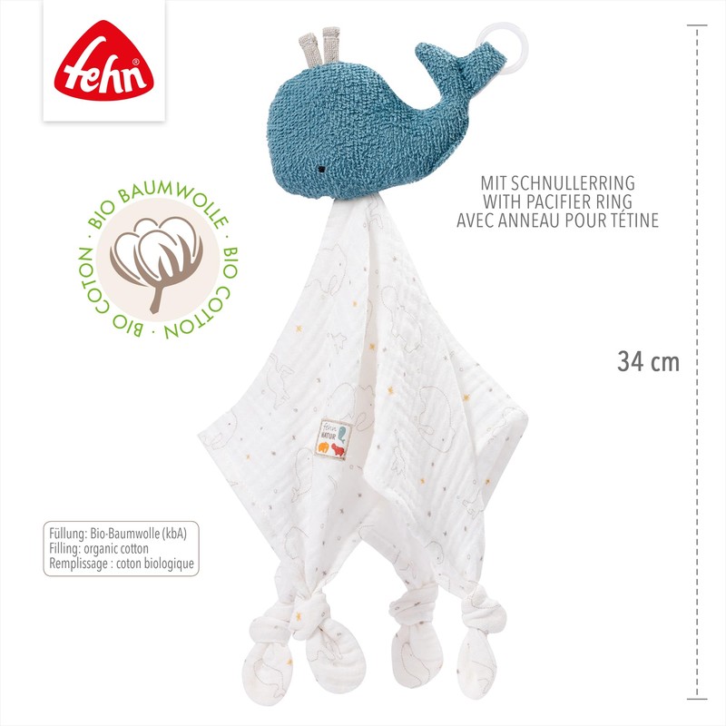 - Box contents: 1 x cuddly blanket whale fehnNATURE, size: 34 cm, with organic cotton (organic), washable at 30 °C, item number: 056068