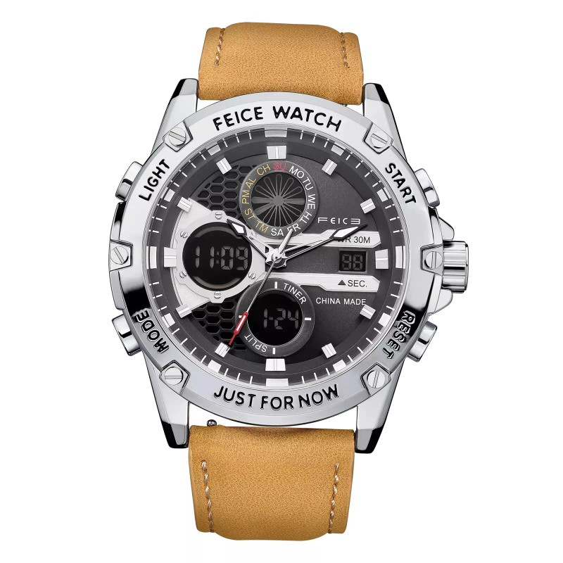 FEICE SILVER ACCENTED DUAL DISPLAY WATCH