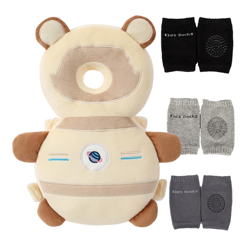 Feidoog Baby Head Protector Cushion Backpack with 3 Baby Knee Pads for Walking & Crawling,Khaki Astronauts