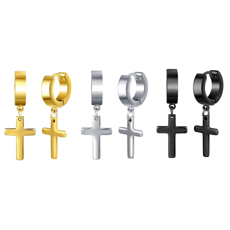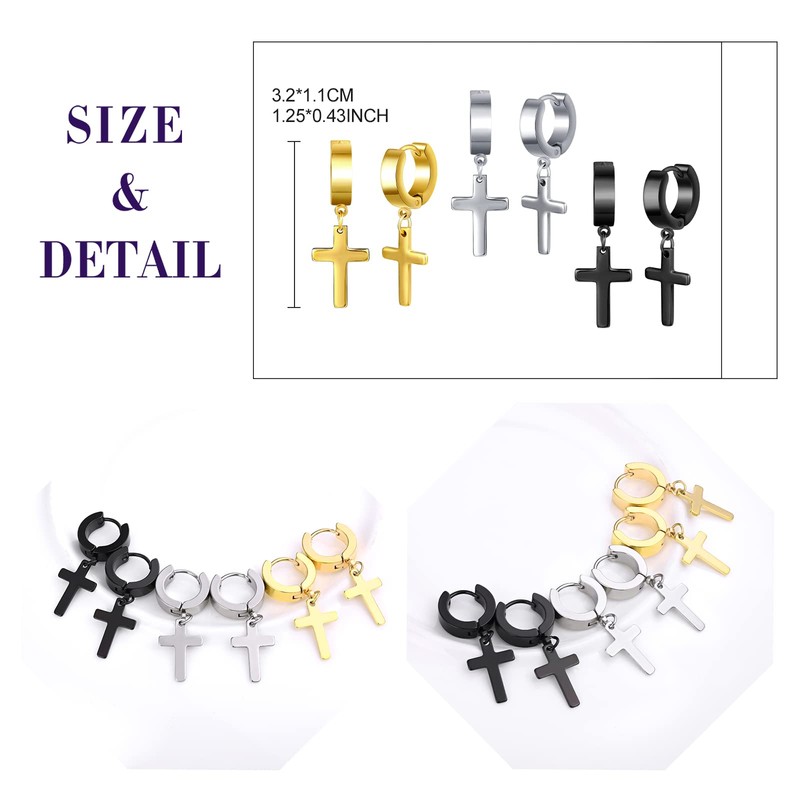 Feilok 2/3 Pairs of Hoop Earrings for Men Women Stainless Steel Stud Earrings Huggie Earrings Set Cross Hinged Cross Earrings Dangle Folding Earrings, Stainless Steel