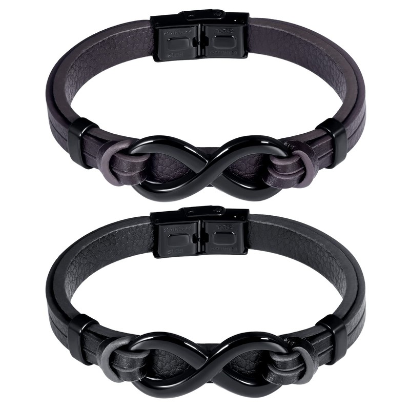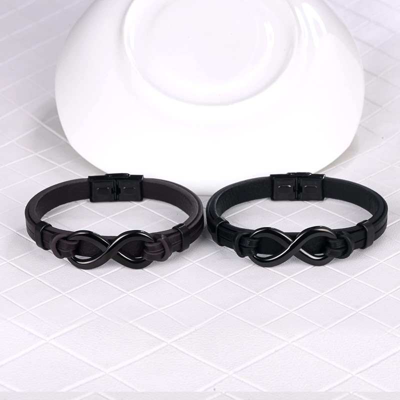 Feilok 2 pcs Bracelet for Man Genuine Leather Women Unisex Cuff Wrap Bracelet Clasp Rope Wristband Infinity Leather Bracelet