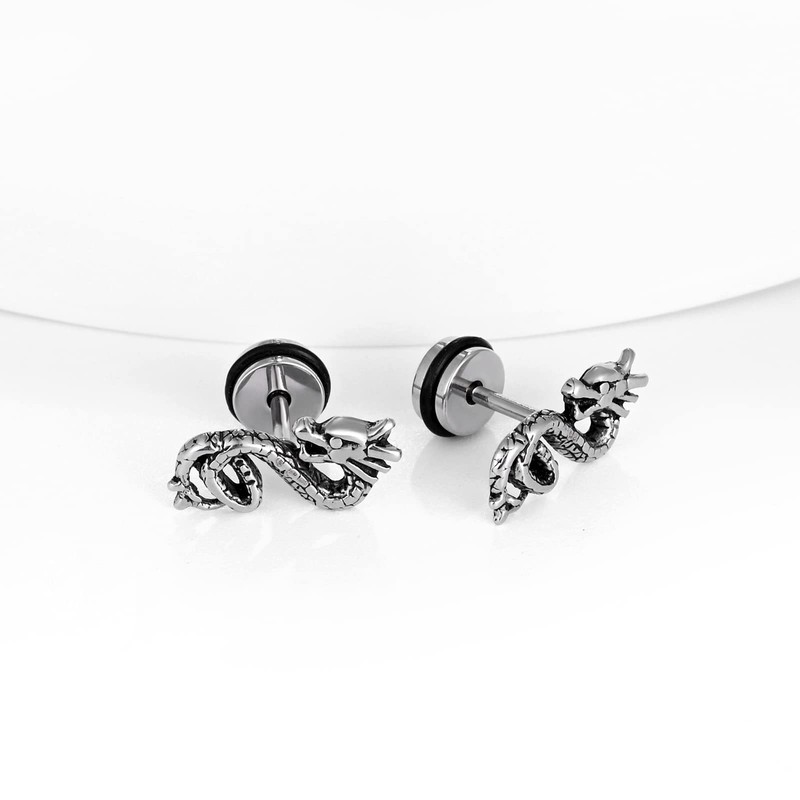feilok Earrings for Men silver Dragon Stud Earrings Mens Earrings Stainless Steel Earrings Set Jewelry Piercings for Man