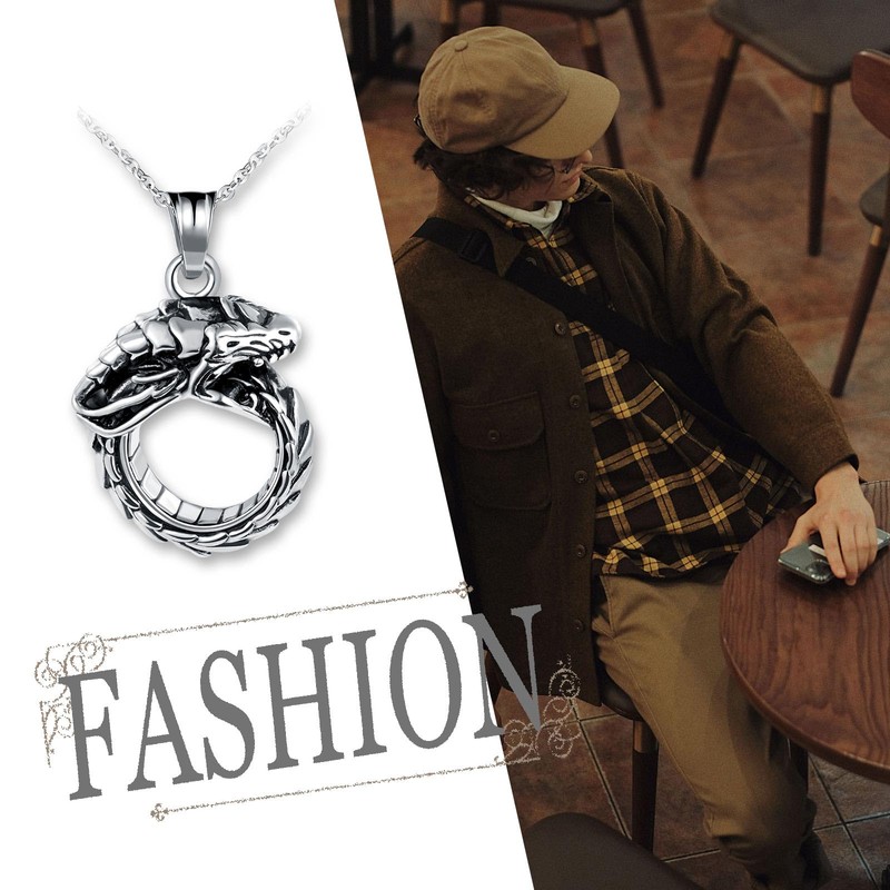 Feilok Men's Stainless Steel Necklace Chain 23" with Pendant Snake for Men Man Boys Kids