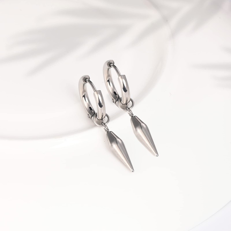 feilok Stainless Steel Hoop Earrings for Men Women Spike Earrings with Pendant Earrings Men's Hoop Earrings Hanging Earrings with Pendant, Stainless Steel