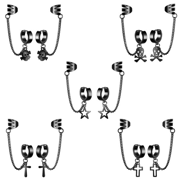 feilok Stainless Steel Hoop Earrings with Chain Fashion Women's Earrings for Men Ear Piercing Stud Earrings Chain, Stainless Steel