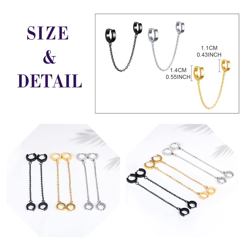 - Size: diameter: 0.9 cm, width: 0.4 cm, chain: 8 cm, weight: 2.89 g, box contents: 3 pairs of stud earrings