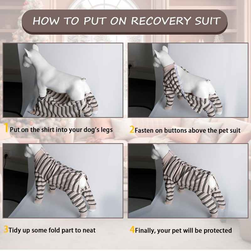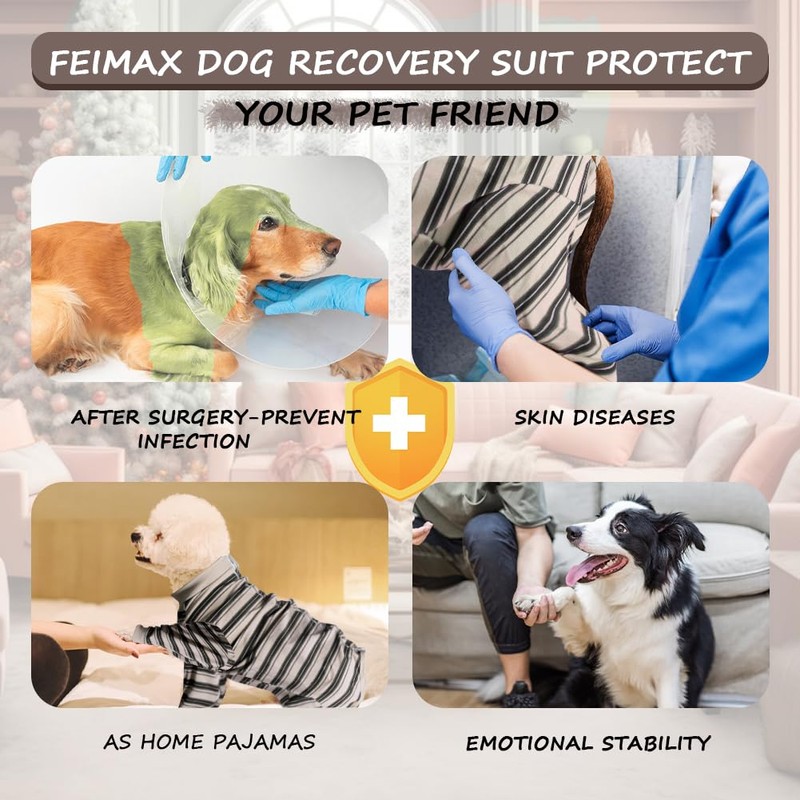 - Effective Protection After Surgery Our recovery suit dog is designed to provide full coverage and protection to your dogs after surgery. It is a reliable alternative to conventional collars and effectively prevents licking or scratching surgical wounds. It also helps pets whose fitness is impaired after surgery to stay warm.