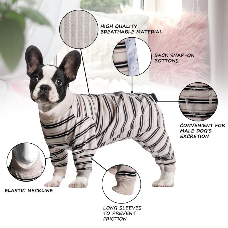 - HIGH QUALITY MATERIAL Made of breathable and lightweight polyester and cotton fabric, this wound protection suits for dogs ensures your dog's comfort during the recovery process, allows air circulation while preventing overheating, ensures a healthier recovery for your dog, is easy to clean and dries quickly.