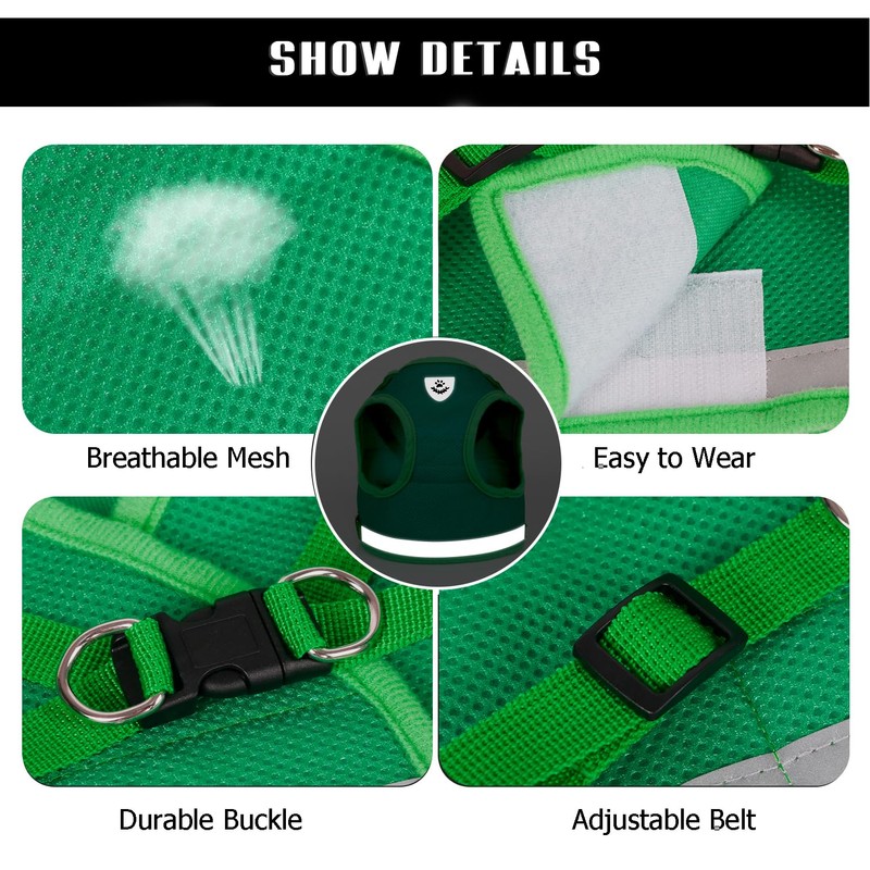 - 🐕Reflective & Safe - Reflective dog harness strap design, makes it visible in dark night and low light conditions, improves safety when dogs and cats walking at night. And the vest-type design evenly distributes the stress area of the chest and shoulders, reducing the dog's stress.
