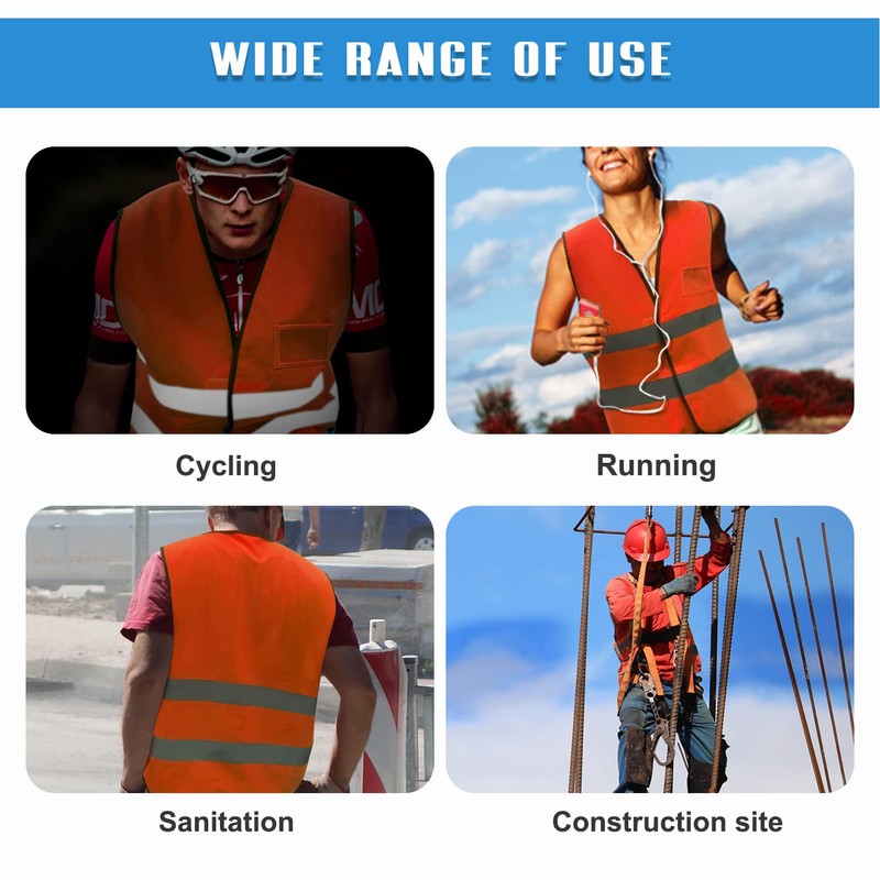 - WIDELY USED Safety vests are perfect for security, construction, luggage handling, traffic control, railway, hygiene, surveying, landscaping, paving, and volunteers. You can also wear it for hiking, jogging, cycling, running and motorcycling in daylight or low light conditions.