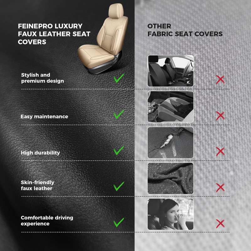 - Universal Fit for Every Drive - Transform your ride with FEINEPRO Car Seat Covers, designed to seamlessly fit most 5-seat vehicles, SUVs, and pick-up trucks. Installing a stylish new look has never been easier! Check our compatibility link to ensure the perfect fit for your car model
