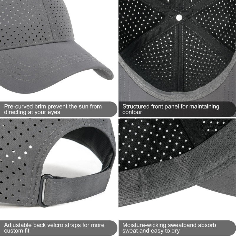 FEINION Men Summer Adjustable Performance Hat Breathable Snapback Laser Perforated Baseball Cap (Dark Grey)