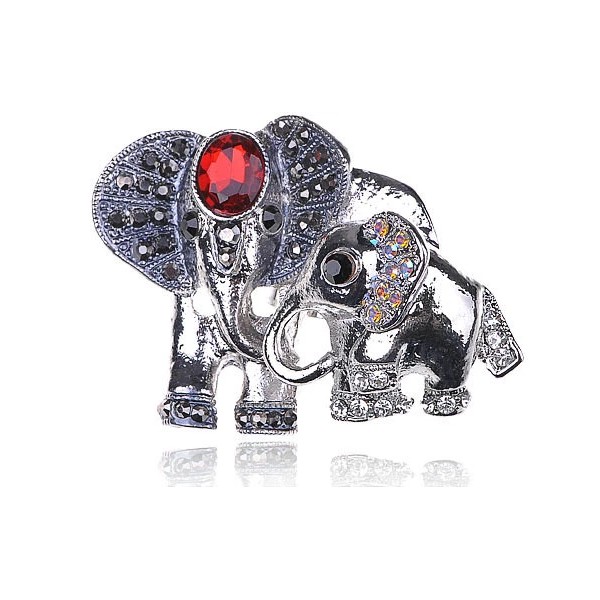 Feinuhan Lovely Mother Baby Family Ruby Clear Crystal Rhinestone Elephant Cus...