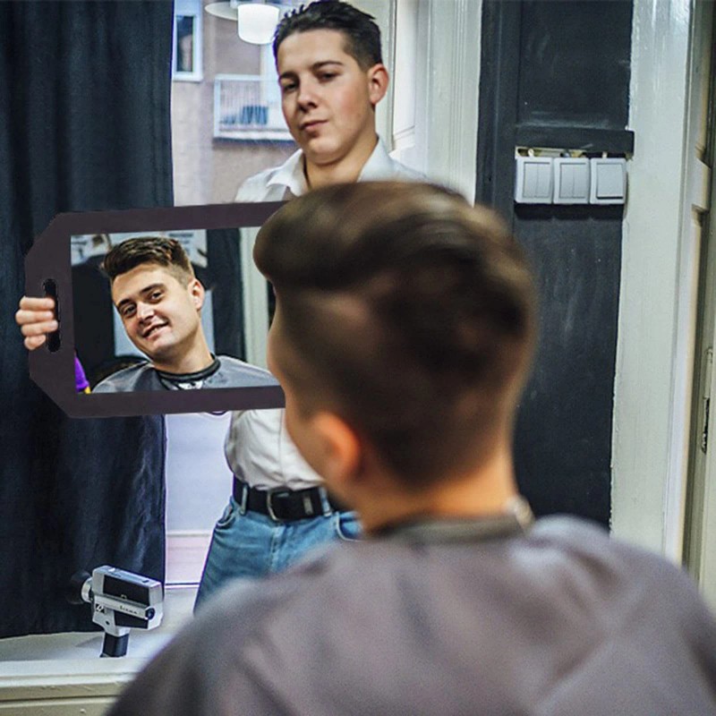 【Versatile Design】Outfitted with a foam barber mirror with a double handle, this implement affords various grip options for ergonomic ease during prolonged styling.