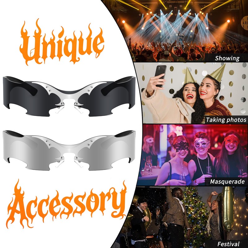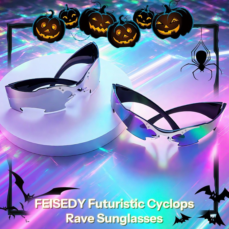 - [Rave & Festival Essential] Bats & spider webs float on mirrored lenses, create Halloween and party vibes or year-round eerie style
