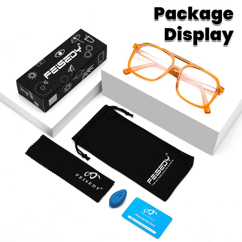 - [Excellent Eye Protection] - FEISEDY glasses protect against up to 99% of harmful blue light and UV400, reducing glare, eye strain, blurred vision, dry eyes, headaches, and discomfort associated with prolonged use of electronic devices or working under fluorescent lights.