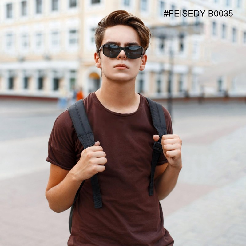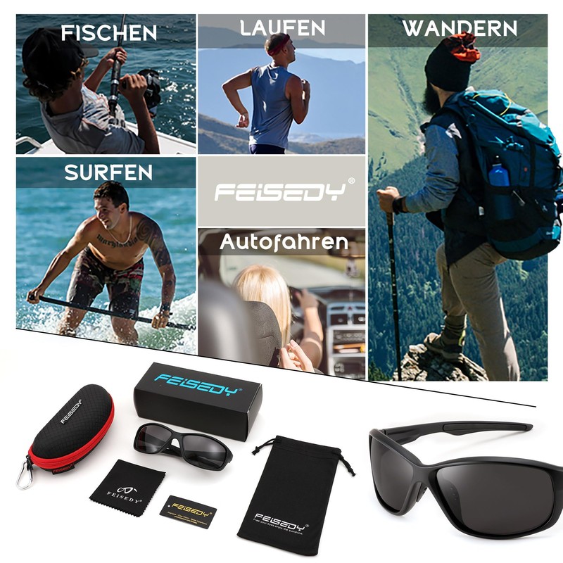 FEISEDY B0035 Men's Polarised Cycling Glasses Sports Glasses with Super Light Frame UV400 Protection for Fishing, Driving, Running and Golfing, Sand Black
