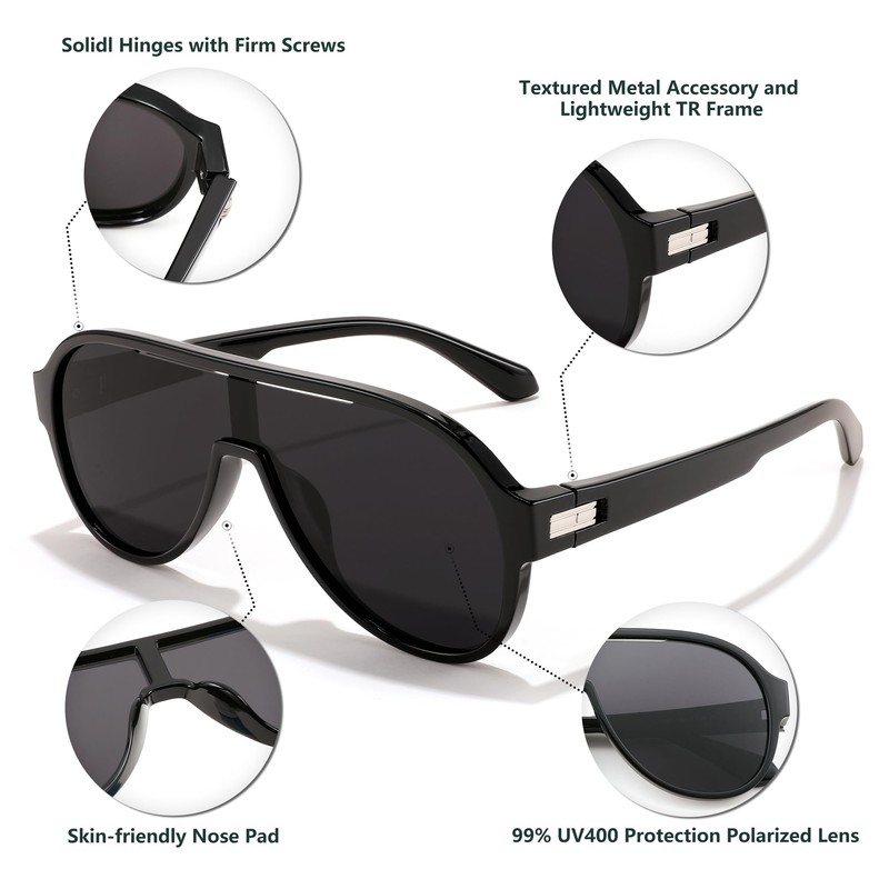 - [UV400 TAC Polarized Lens] Polarized lens can eliminates glares, increase visual clarity, enhance contrast and reduce eye strain, block almost 99% of the reflected lights effectively, better perception experience of scenery in the sun compared with non-polarized lenses.