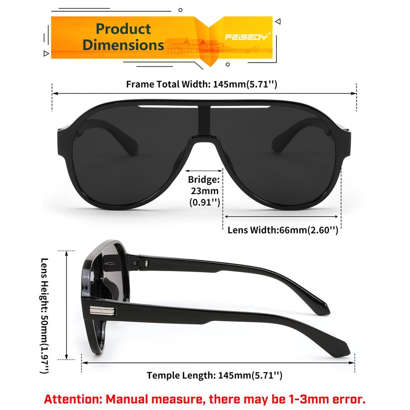 - [Fashion Oversized Shield Sunglasses] FEISEDY fashion oversized frame one-piece lenses sunglasses for women and men, perfectly covers eyes and beautifies face.