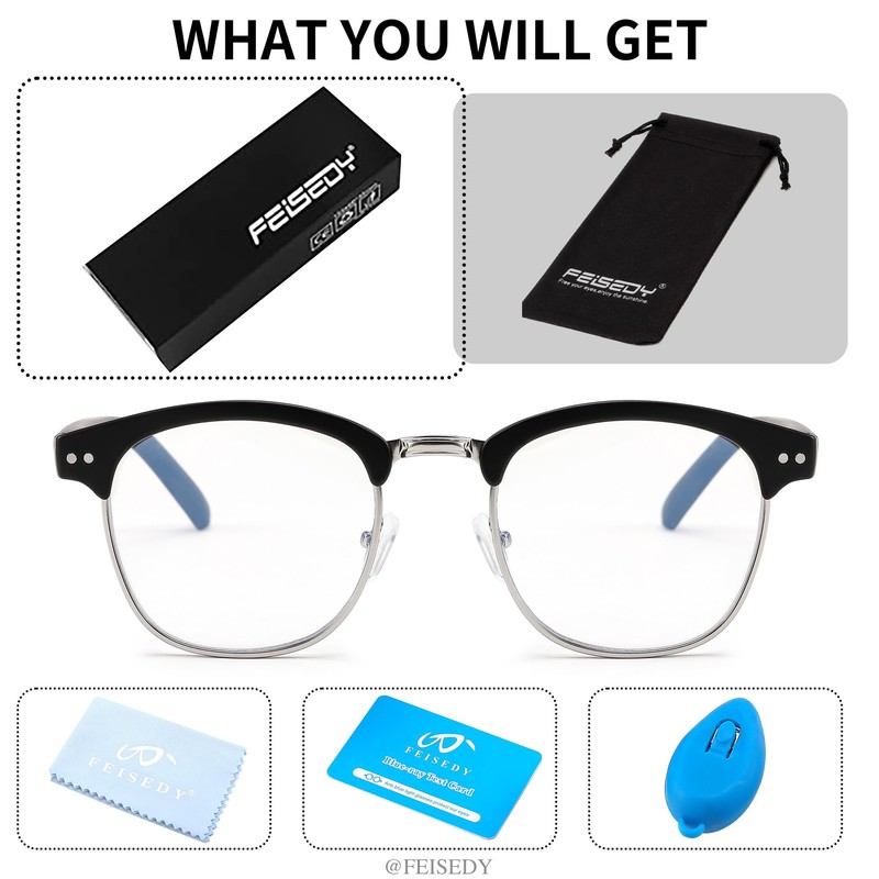 - CLASSIC DESIGN – Classic semi-rimless design for men and women, you can wear it for fashion.These FEISEDY Retro glasses will bring you a timeless trendy appearance, and can go with various face shapes.