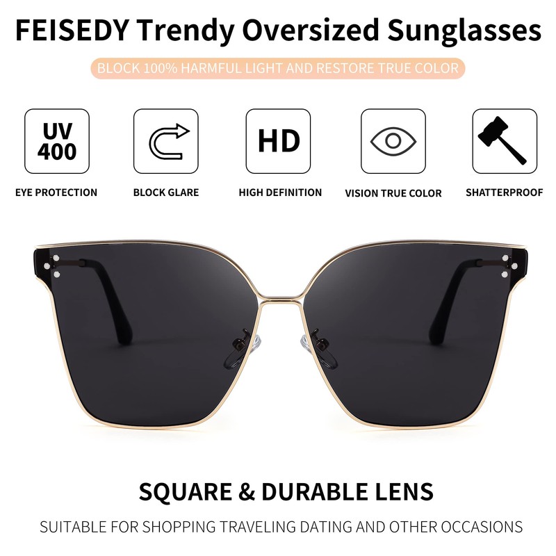 - UV400 Protection - FEISEDY Trendy square sunglasses provide 100% protection against harmful UVA / UVB rays. Sunglasses are specifically designed for effectively eliminate and filter the scattered light in the beam, making the view clear and natural, making the scenery look soft and not dazzling.