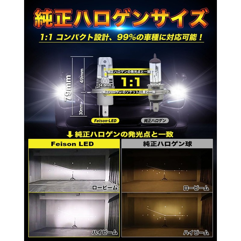 • Product Specifications: Car LED headlight, built-in noise cancellation, non-polarity design, fixed current protection circuit, model number: H4/H19 / Color: White (6500K) / Wattage: 60W (total of 2 bulbs) / Brightness: 16,000LM / Set quantity: 2 pieces/Voltage: DC 12-30V / Operating environment: -40°C to 80°C. :5000 More than 0 hours Warranty: ※If there are any problems or defects occurring within one year of the date of your order, please contact us and we will responsibly responsibly responsibly. [Note]: Some products are very similar to the product image and other products are different from the ones we use. Please check the "Feison" brand shop before purchasing