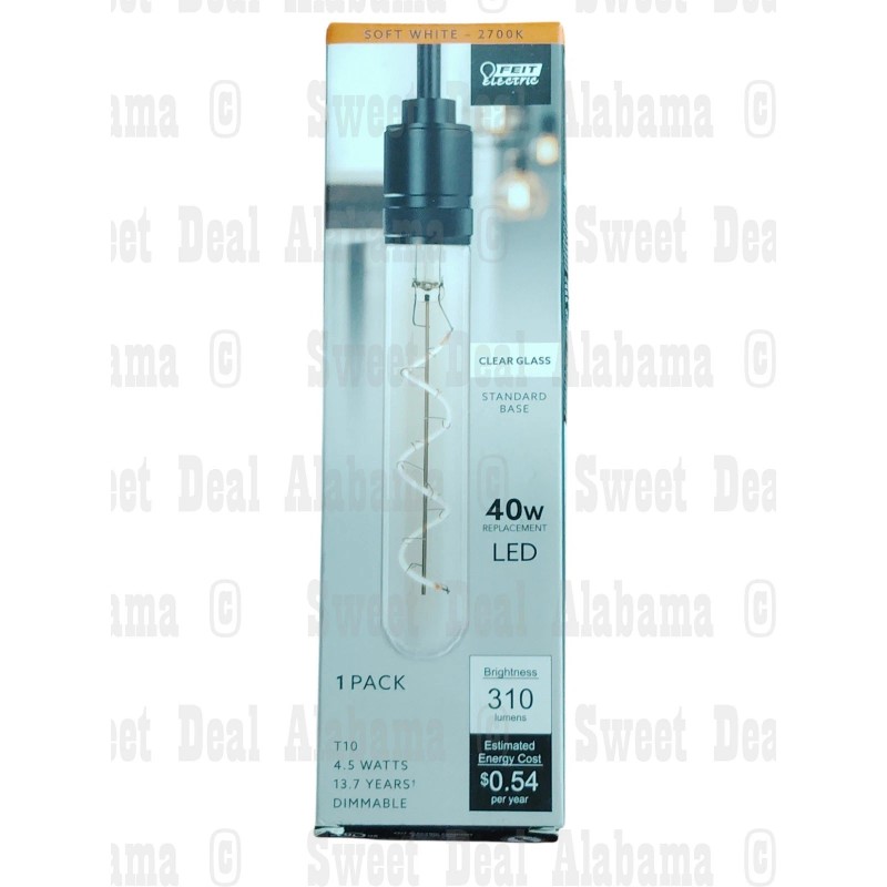 Feit Electric 18229 LED Vintage Filament Bulb, T10, 40W Equivalent, Dimmable