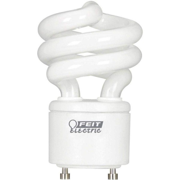 The Feit Electric BPESL13T/GU24 60W Mini Twist GU24 Base CFL 2700K soft white light is non-dimmable and will replace a 60-watt equivalent incandescent bulb. It produces a similar light output of 900 lumens, uses 13 watts of electricity and up to 78% less energy than a standard incandescent light bulb. This compact fluorescent light is ideal for ceiling fans, chandeliers, table lamps, or wall sconces. Feit Electric CFL bulbs have a relatively cool running performance, an average life of 10000 hours / 9.1 years and are RoHS / FCC compliant. Choose a dependable, general purpose lighting bulb for residential or commercial applications