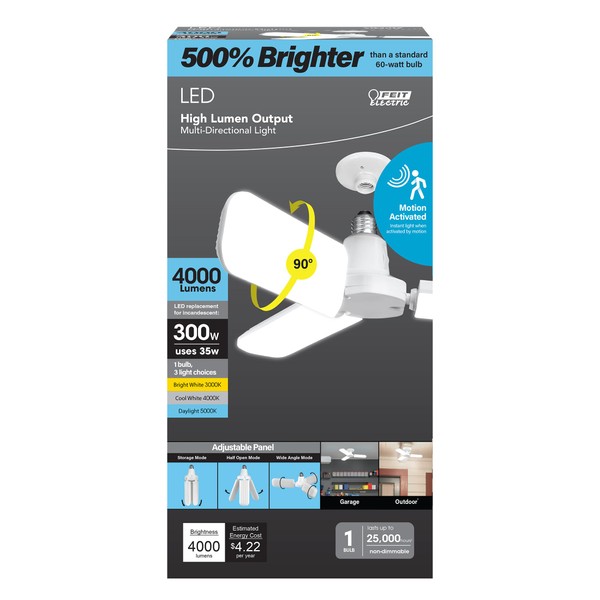Feit Electric LED Garage Light, Multiple Adjustable Panels, E26 Base, Ideal for Garage, Workshop, Shed, 25,000-Hour Lifetime