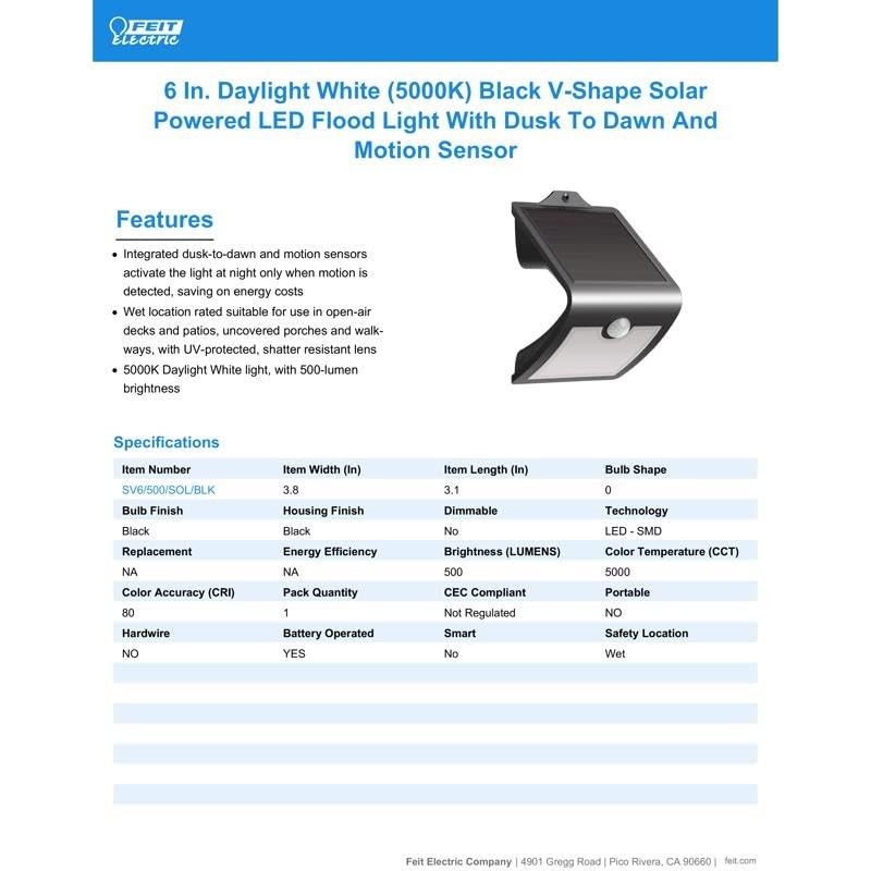 Feit Electric Motion-Sensing Solar Powered LED Black Security Light
