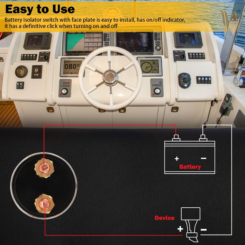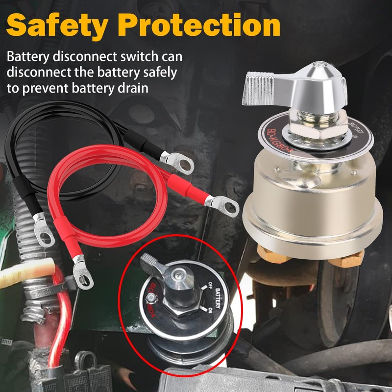 - High current battery disconnect switch is designed to cut off the electrical power of the electrical system, which protects against electrical fires and theft when equipment is not in use and provides a reliable way to shutdown electrical power during maintenance and protect batteries from excessive battery drain. Disconnct the battery when you are not driving a car / boat / RV / vehicle / ATV / Trailers / Off-road, etc. Keep you safe all the time.