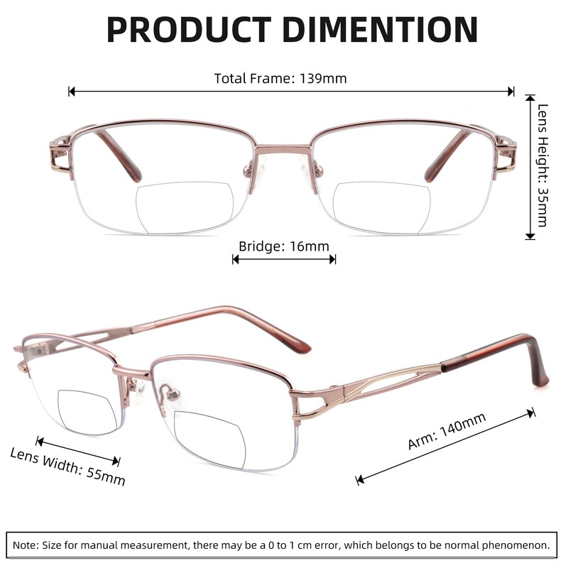 - Stylish design specs: Rectangular bifocal readers with a fun and colorful design for a fresh look. Popular color design: Baby Pink / Royal Blue , suitable for most people readers, give you all day reading protect.Metal half rim frame, womens readers with fixed hinge, fashion designed hollowed-out temples