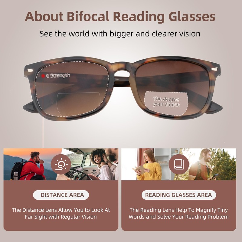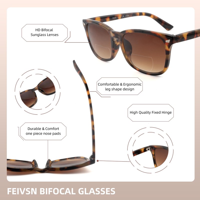 - Far and near Dual-use Reading Glasses: FEIVSN bifocal presbyopic glasses that are excellent for all-day wear; No-magnification area is sufficient for distance watching TV / driving, while the reading area with precise magnification is perfect for reading / small print / writing / handmade and other close up activities
