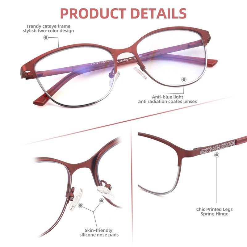 - ✓Stylish Two-color Design: Crafted with nice stainless steel frame and comfortable skin-friendly soft silicone nose pads, red + silver on the front, but solid red on the side, it's perfect for you to use at work or in life, which makes you look professional and attractive