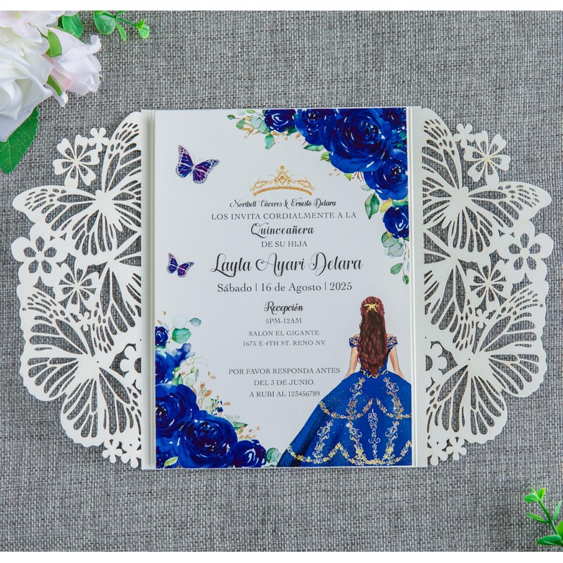 FEIYI 20 PCS 5.12x7.2 Butterfly Quinceanera Invitation, Laser Cut Wedding Invitation Cards with Envelopes for XV Anos Bridal Shower Baby Shower Invite (Blue Glitter)