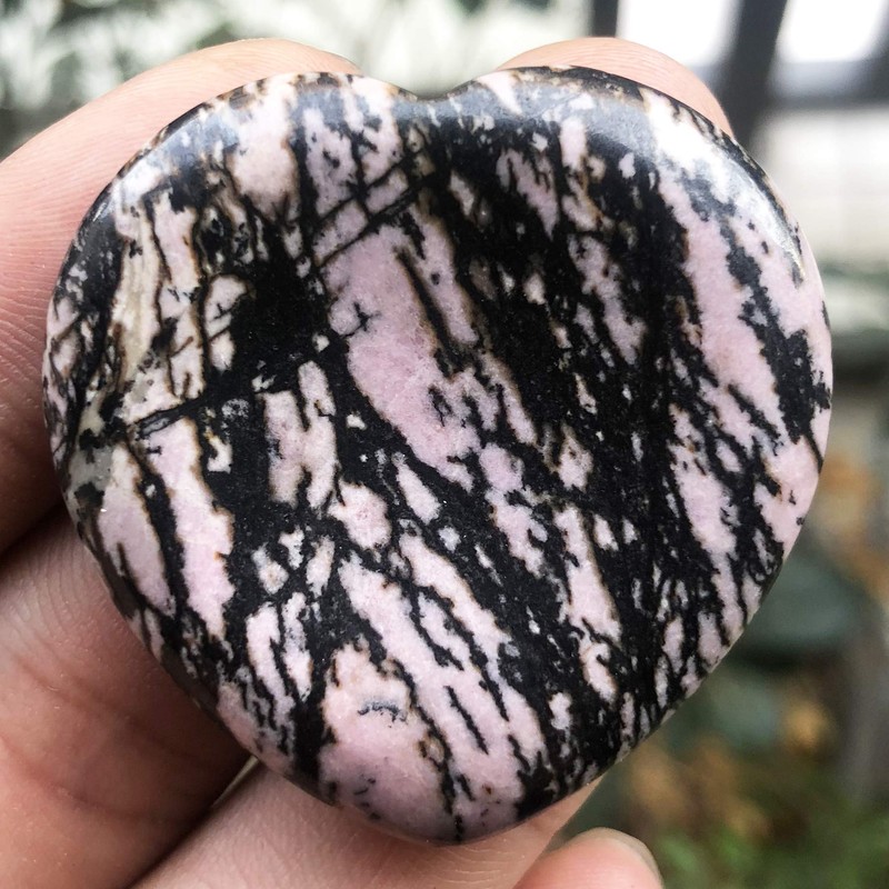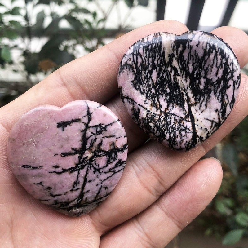 Fekuar Natural Rhodonite Crystal Thumb Worry Stone, Hand Carved Healing Crystal Heart Shaped Stone for Anxiety Stress Relief Meditation 1.5"